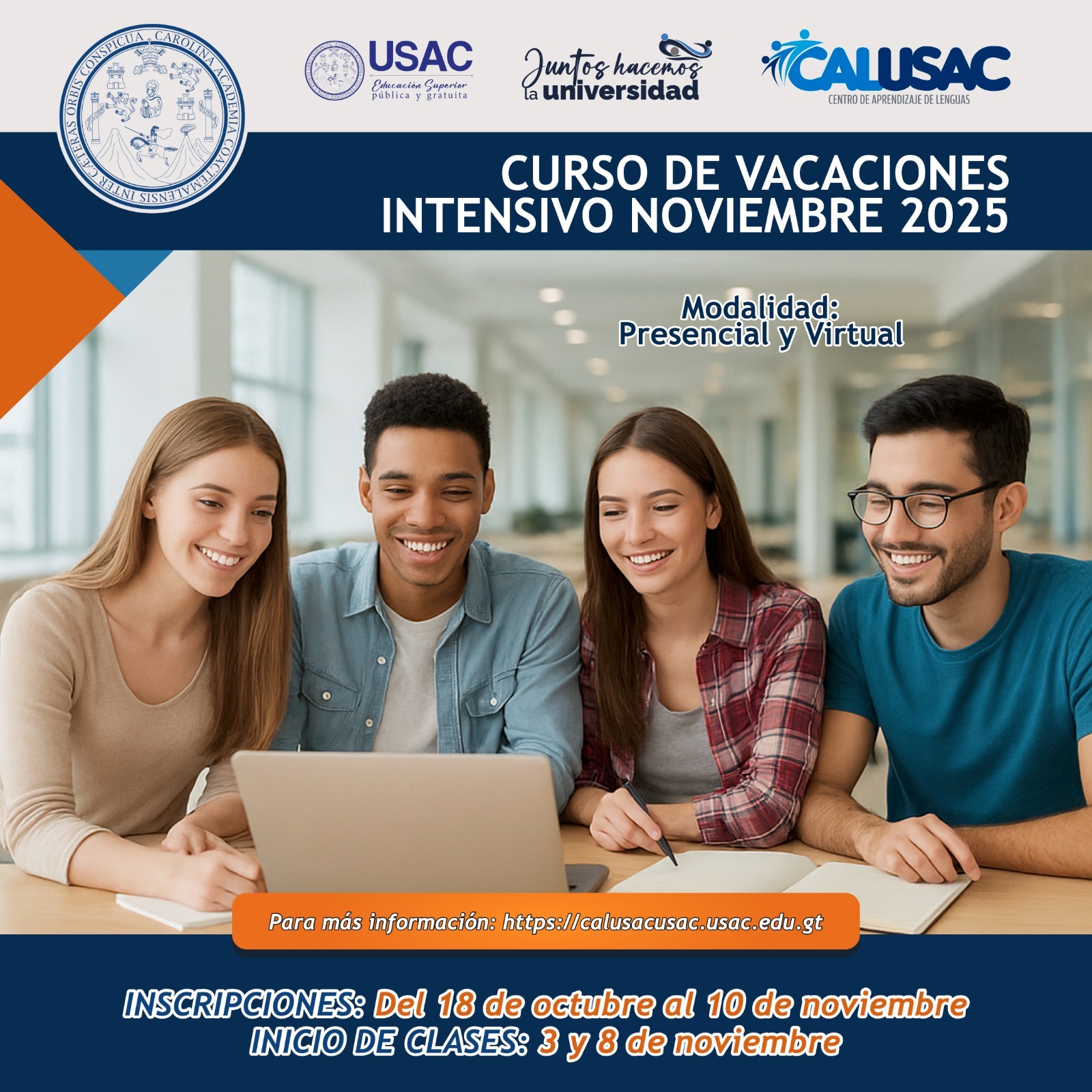 Bienvenidos a el Centro de Aprendizaje de Lenguas CALUSAC el cual pone a su disposición varios idiomas que puedes aprender en diferentes tipos de cursos (bimestrales, intensivos, virtuales, etc.). Los idiomas que se imparten actualmente son: inglés, francés, alemán, italiano, portugués, japonés, coreano, mandarín, ruso, hebreo, Kiche, Q’eqchi, Kaqchikel, latín y árabe.